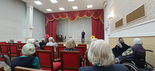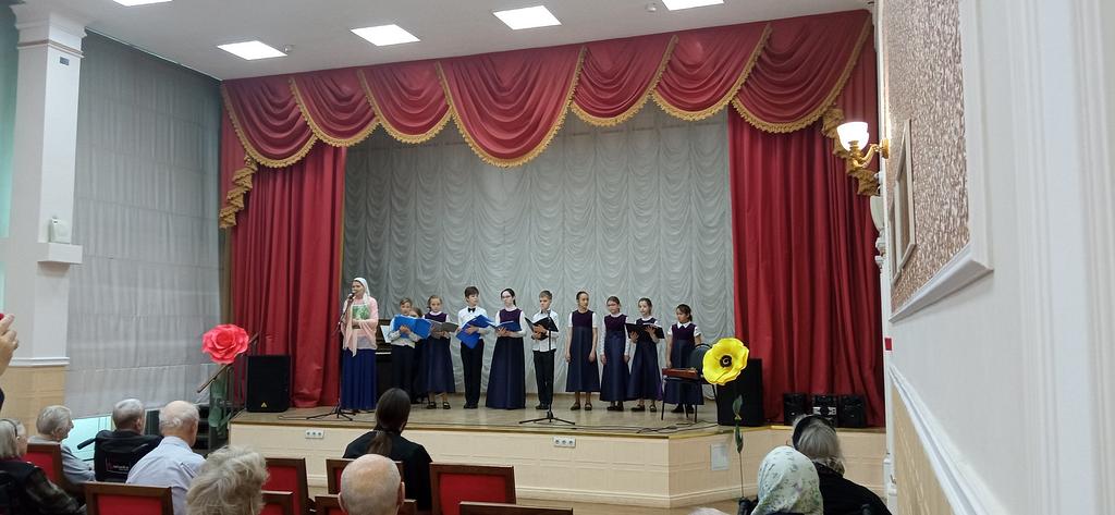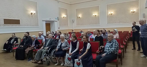 Иерей Димитрий во вступительном слове поздравил ветеранов и администрацию с престольным и с прошедшими праздниками. Зрителям были представлены патриотические стихотворения. Вокально-хоровой ансамбль Воскресной школы под руководством О.И. Лобановой исполнил духовные произведения.