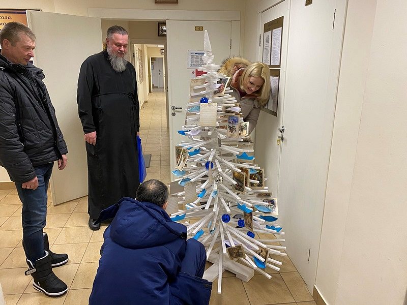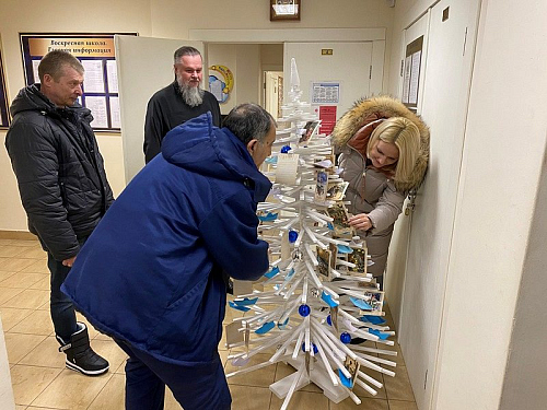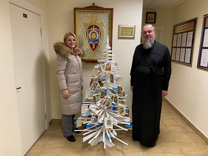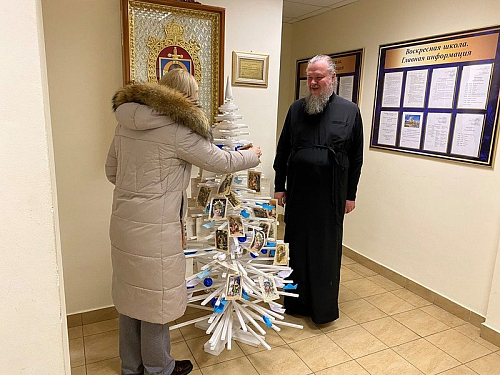 Настоятель храма игумен Дамиан (Залетов) принял новогодний дар и тепло поблагодарил Елену Николаевну и тружеников школы. Он отметил замечательный труд ребят, которые вложили свою любовь и радость в изготовление праздничной ели.