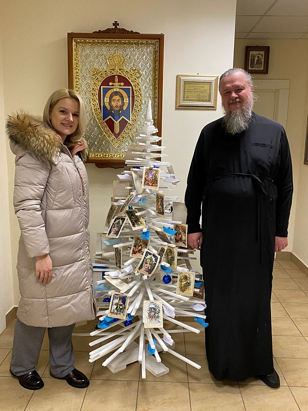 Новогодний подарок и символ дружбы и сотрудничества передала на Патриаршее подворье директор ГБОУ РШИ № 32 Войтас Светлана Анатольевна. Доставила елку начальник информационно-аналитического отдела Жихарева Елена Николаевна.