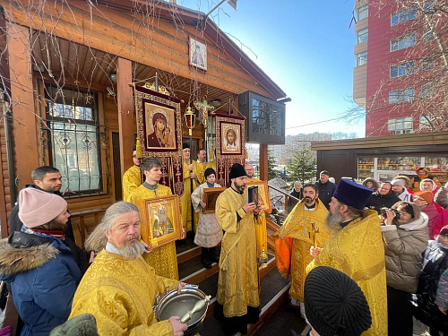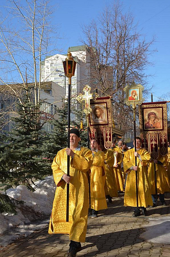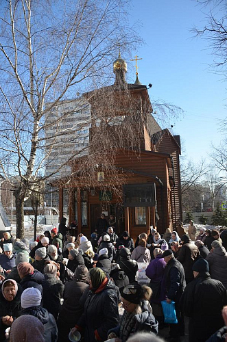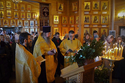 Всенощное бдение c чтением акафиста святителю Луке накануне и праздничную Божественную Литургию в день праздника отслужил настоятель храма иерей Иоанн Омелянчук в сослужении иерея Самуила Мнацаканова и диакона храма Христа Спасителя Иоанна Клинцова.