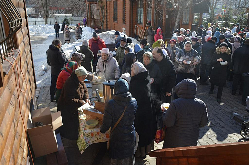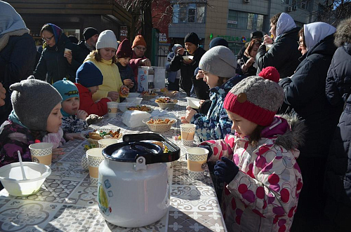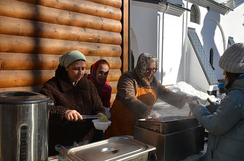 По окончании богослужений на территории храма для всех присутствующих на торжестве организована праздничная трапеза: постный плов, приготовленный на полевой кухне, и традиционный ароматный чай по старинному рецепту.