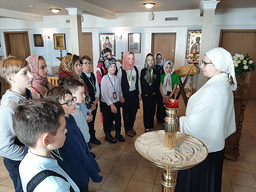 Школьники узнали, из каких частей состоит православный храм, что находится в алтаре, познакомились со святынями храма.