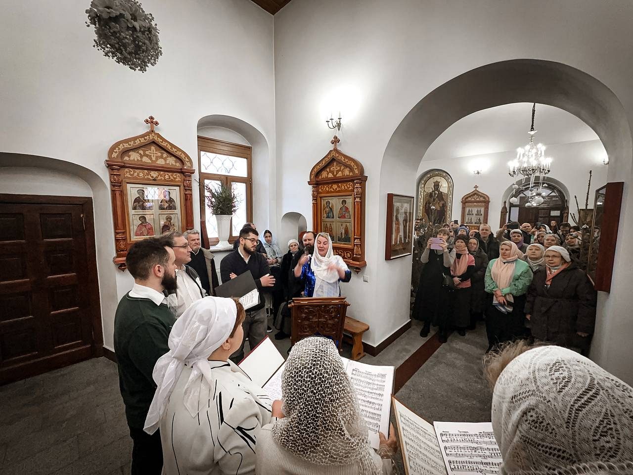 Затем своим исполнительским мастерством порадовал хор храма под управлением регента Ларисы Артющенко (солисты: Дарья Панченко и Иван Широков). Были исполнены произведения как классических духовных композиторов, так и современных, а также произведения греческого распева Валаамского монастыря в аранжировке духовных лиц: тропарь Рождеству Христову (муз. С. Дегтярева), кондак (муз. Д. Бортнянского), «Под Твою милость…» (муз. Я. Чмелева), «Радуются вси Ангели» (муз. М.П. Строкина), Светилен на Рождество Христово (муз. диакона С. Трубачева), «Ныне отпущаеши…» (муз. А. Третьякова), малое славословие (муз. М. Остроглазова), Стихира Рождеству Христову «Слава в вышних Богу…» (муз. Косолапова) и другие. Также в репертуаре хора прозвучали произведения народного и авторского творчества, а именно: псальм «Возложили на Исуса тяжкий Крест…» и колядка А. Мельничука «Дин – дон».