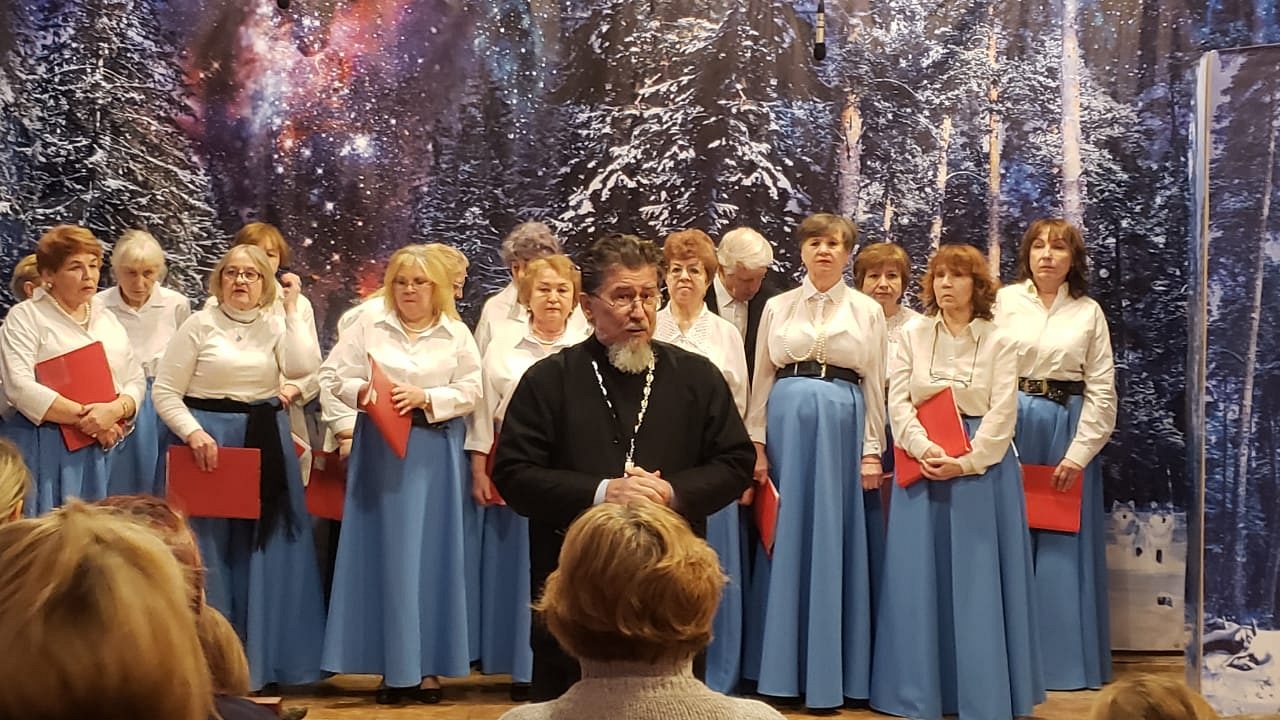 Концертную программу открывал хор "Мелодия", где все исполнители являются участниками проекта "Московское долголетие". Уже второй год пенсионеры Академического района занимаются пением под руководством Алексея Астрова на территории храма Живоначальной Троицы в Старых Черемушках.