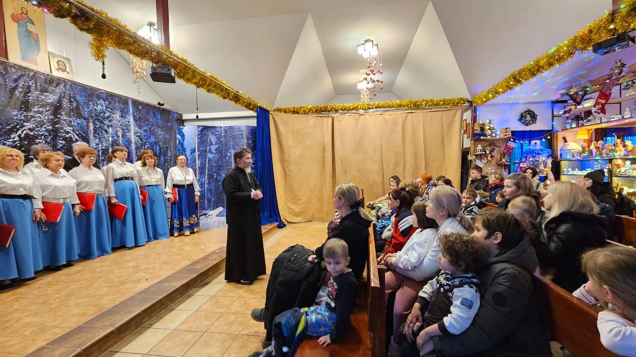 Перед концертом с поздравительным словом к родителям и детям обратился священник храма иерей Виктор Крючков. Священник подробно рассказал о смысле и значении для каждого христианина праздника Крещения Господня.