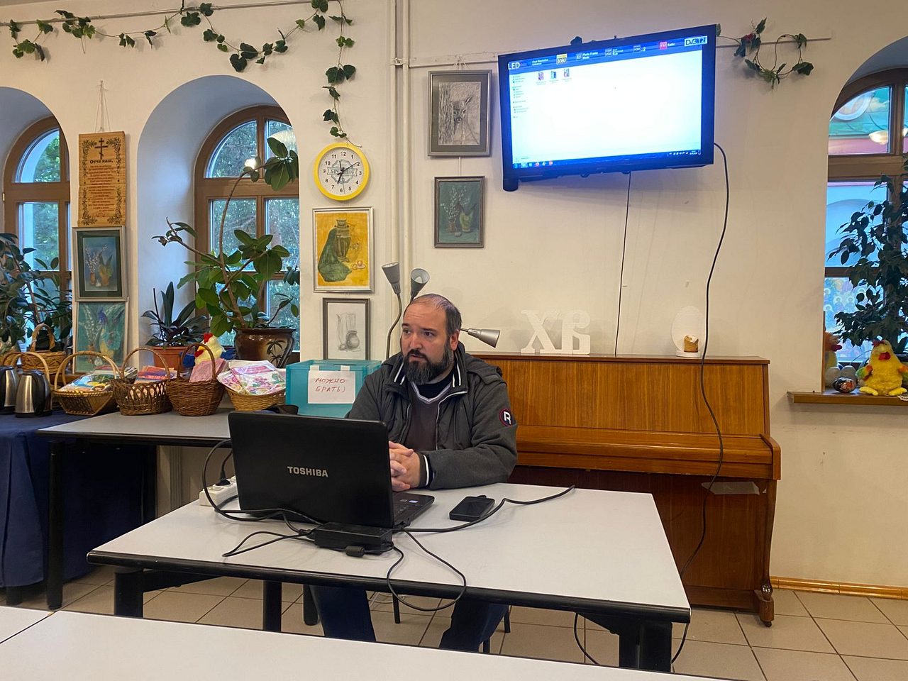 Провел мероприятие Иван Владимирович Кучерявый - иконописец, катехизатор и искусствовед. Лектор познакомил слушателей с различными иконографическими типами Светлого Христова Воскресения, такими как канонический сюжет Пасхи - иконой «Сошествие Христа во ад», на которой Христос выводит из ада Адама, Еву и других героев библейской истории, а так же иболее редкими типами пасхальных икон, например, с изображением Христа, выходящего из открытой погребальной пещеры или заимствованным из западной традиции образ воскресшего Христа, выходящего из гроба и держащего в руках знамя победы и многими другими.