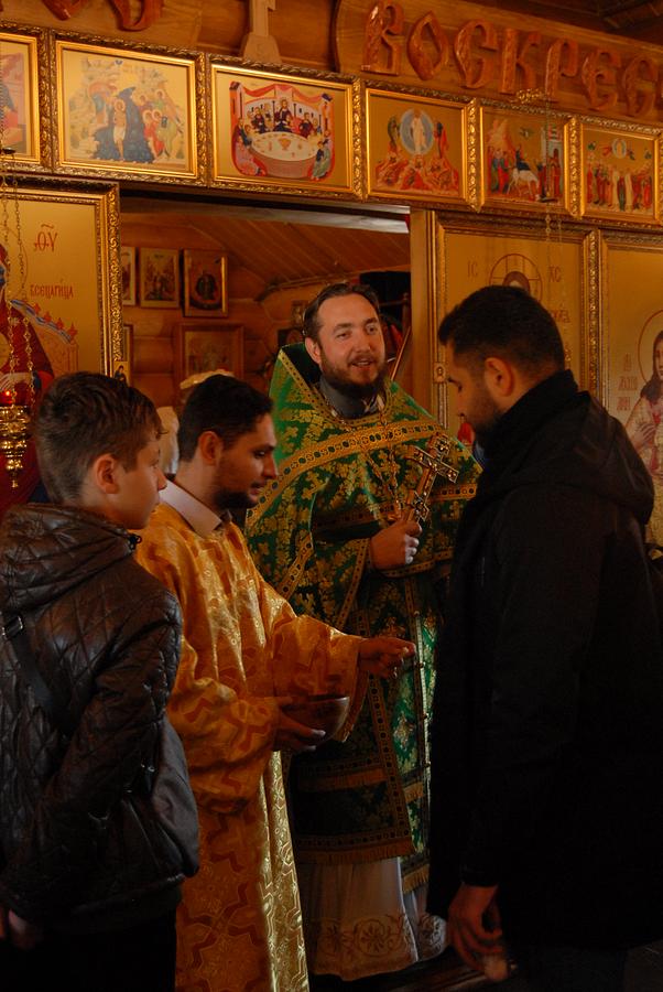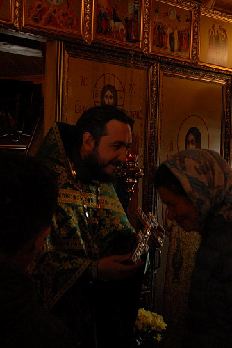 Настоятелю храма иерею Илии Сычеву сослужили: настоятель храма иконы Божией Матери «Знамение» в Захарьино иерей Владимир Галкин, настоятель храма иконы Божией Матери «Отрада и Утешение» на Каховке иерей Александр Мелин и клирик храма преподобной Евфросинии, княгини Московской, в Котловке иерей Сергий Вязьмин.