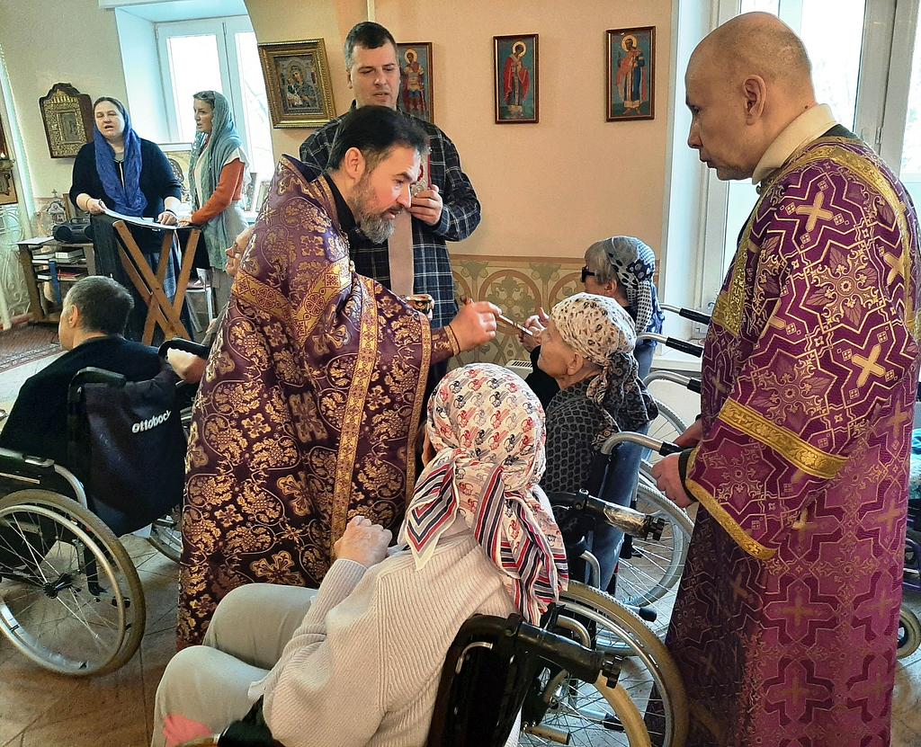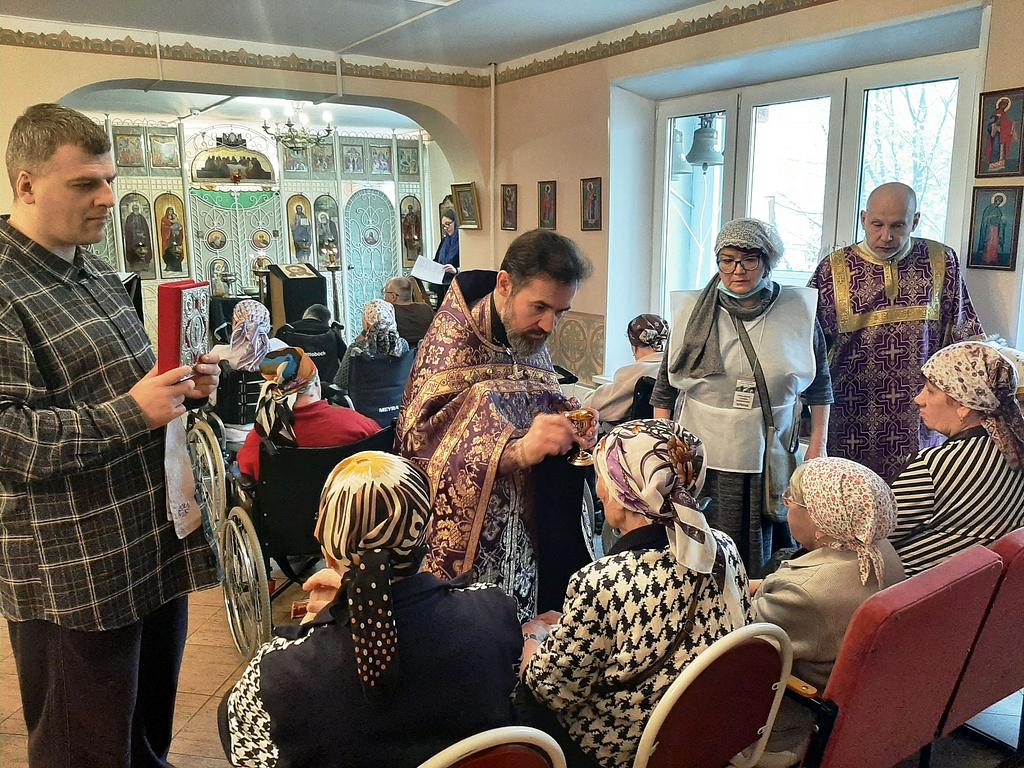 1 апреля 2023 года в храме преподобного Серафима Саровского при Геронтологическом центре «Теплый Стан», приписанном к храму Иверской иконы Божией Матери в Беляеве, настоятель иерей Игорь Краев совершил Таинство Соборования.
