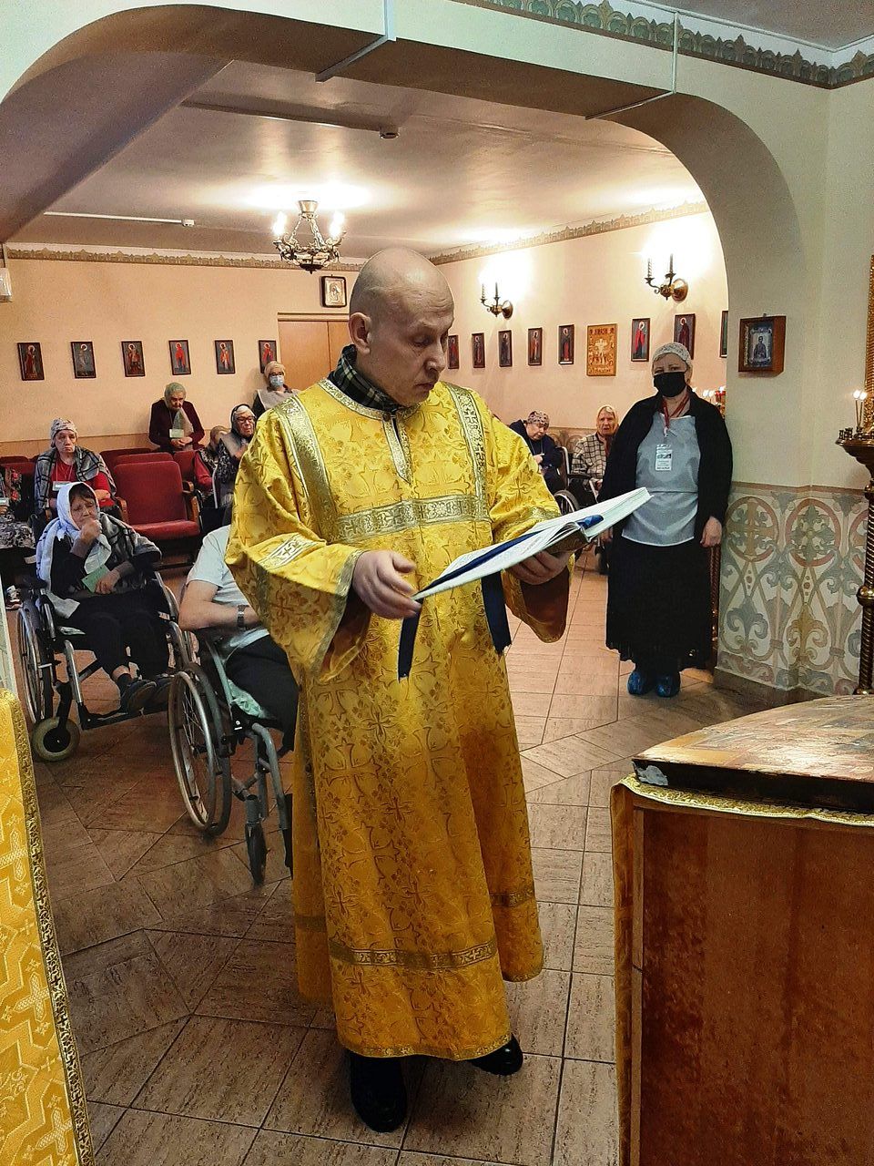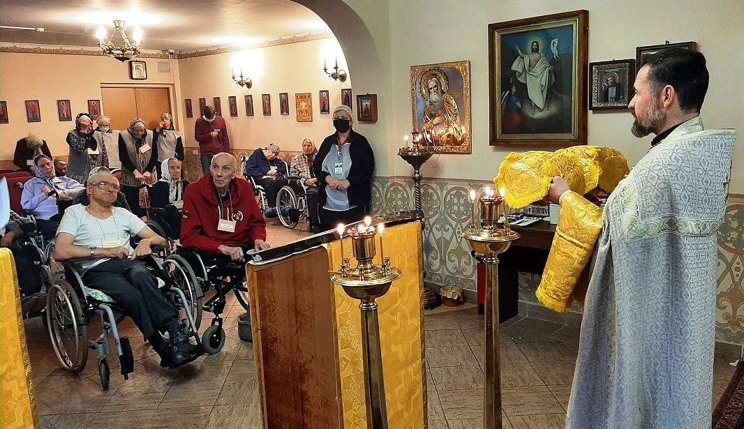 25 ноября 2023 года в храме преподобного Серафима Саровского при Геронтологическом центре "Теплый Стан", приписанном к храму Иверской иконы Божией Матери в Беляеве, настоятель иерей Игорь Краев совершил Божественную Литургию.