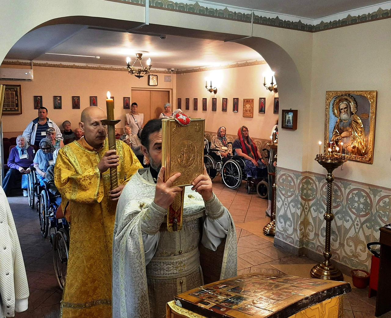 8 июля 2023 года в храме преподобного Серафима Саровского при Геронтологическом центре «Теплый Стан», приписанном к храму Иверской иконы Божией Матери в Беляеве, настоятель иерей Игорь Краев совершил Божественную Литургию.
