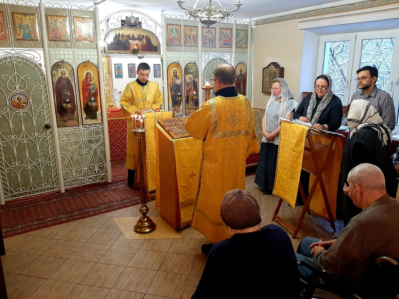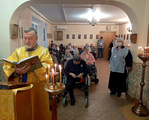 15 ноября 2025 года в храме преподобного Серафима Саровского при Геронтологическом центре «Юго-Западный», приписанном к храму Иверской иконы Божией Матери в Беляеве, настоятель иерей Игорь Краев совершил Божественную Литургию.