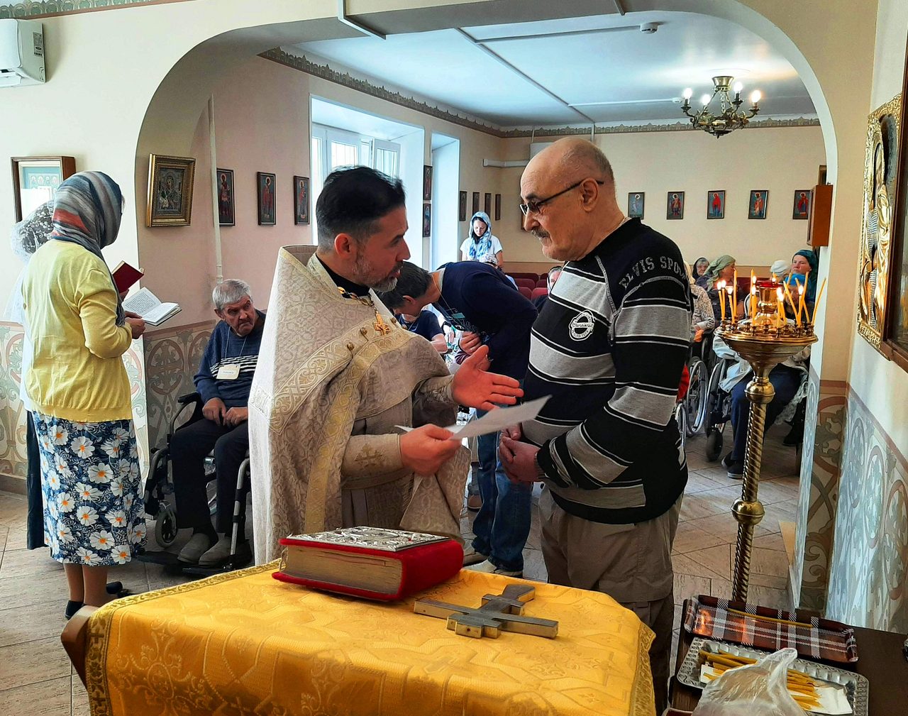 При помощи добровольцев из числа прихожан к Таинству Причастия смогли подготовиться 25 человек в Храме и 6 тяжело болящих на этажах.