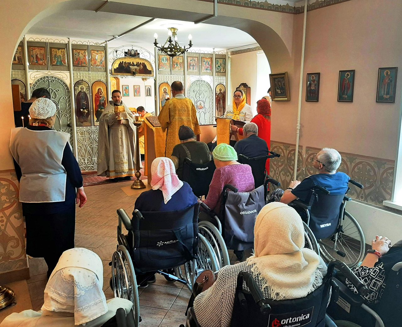 28 июня 2025 года в храме преподобного Серафима Саровского при Геронтологическом центре «Юго-Западный», приписанном к храму Иверской иконы Божией Матери в Беляеве, настоятель иерей Игорь Краев совершил Божественную Литургию.