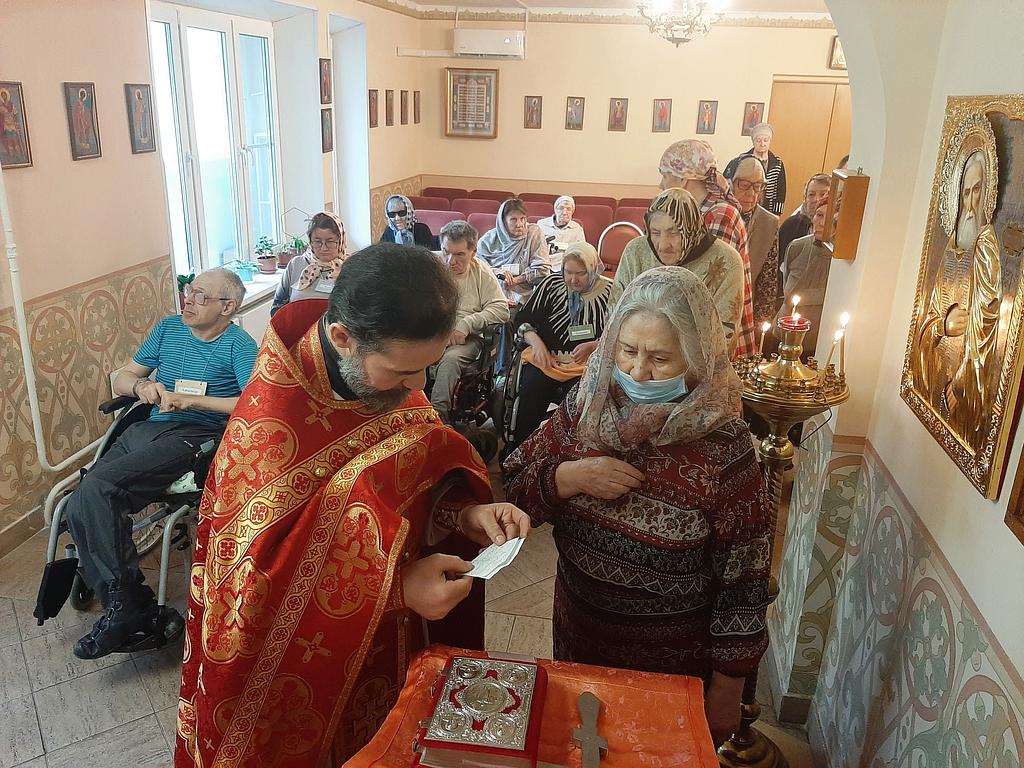 29 апреля 2023 года в храме преподобного Серафима Саровского при Геронтологическом центре «Теплый Стан», приписанном к храму Иверской иконы Божией Матери в Беляеве, настоятель иерей Игорь Краев совершил Божественную Литургию.