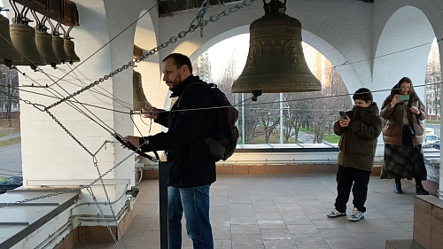 После молебна, по благословению настоятеля, волонтер Игорь совершил праздничный трезвон на звоннице храма.