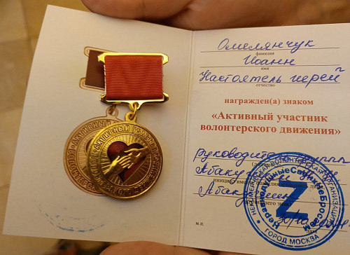 Участники волонтерской группы вручили отцу Иоанну, а в его лице и всему приходу храма, благодарственный знак "Активный участник волонтерского движения".
