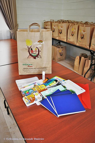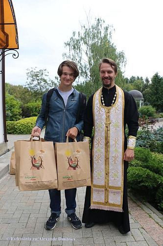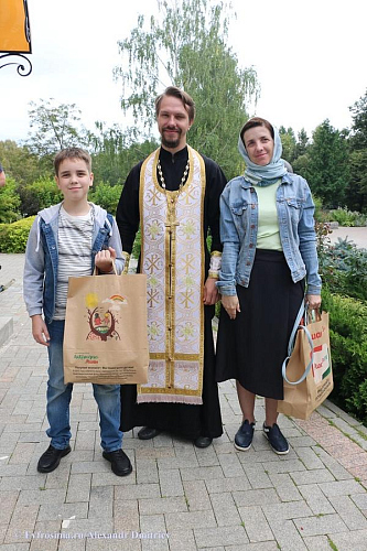 После молебна 62 ребенка из 28 окормляемых многодетных семей прихожан получили подарки к школе. Из них девяти первоклассникам подарили особые школьные наборы и стихотворные напутствия. Подарки вручил ответственный за социальную работу иерей Иннокентий Семенов.