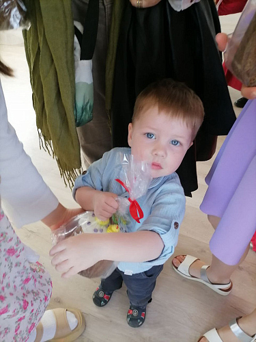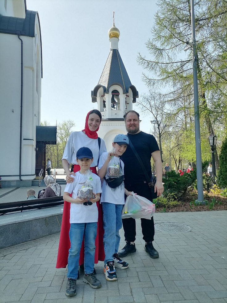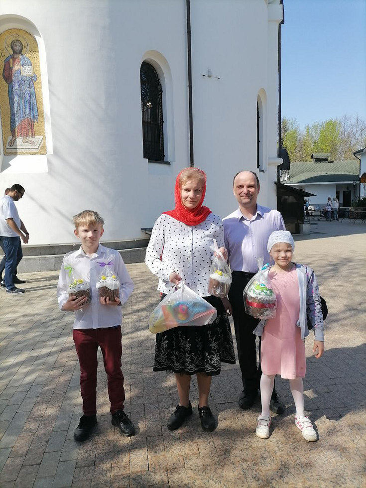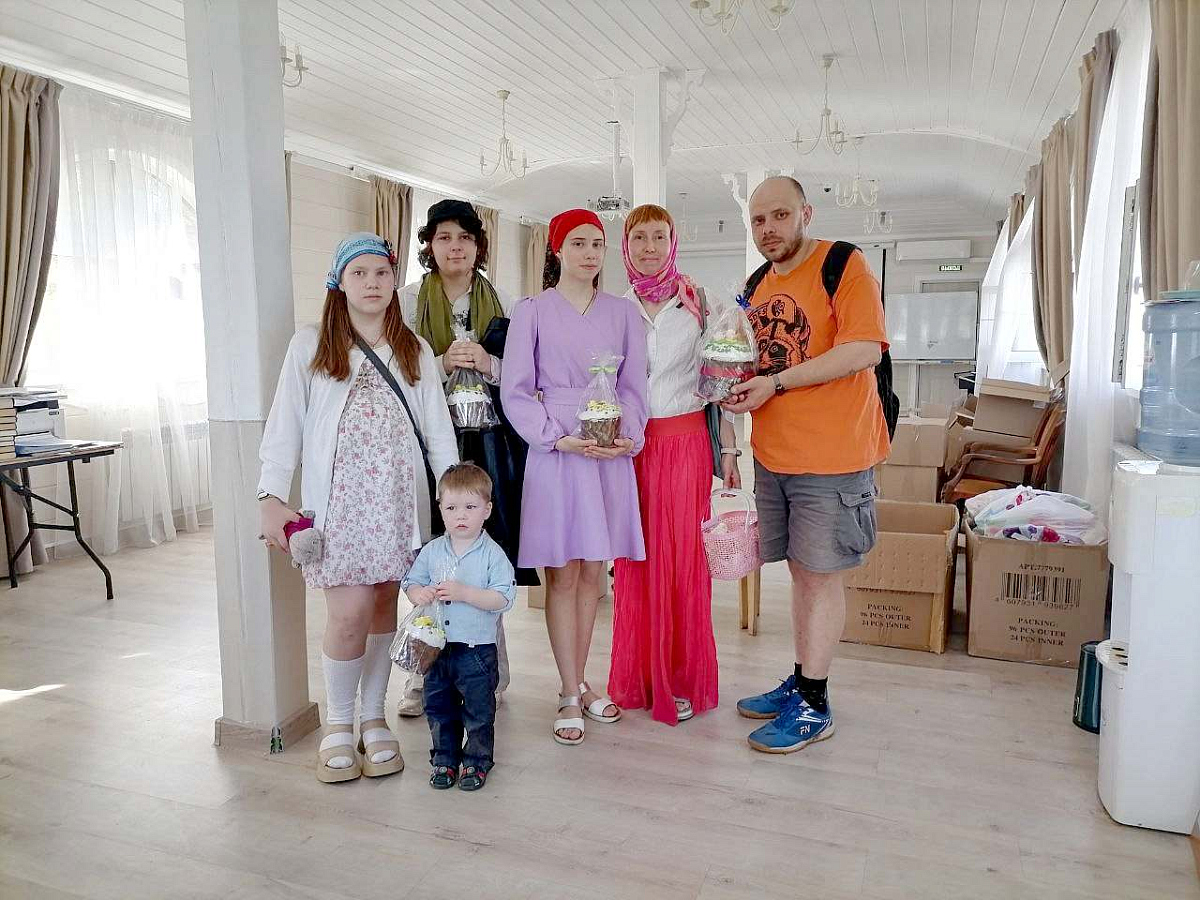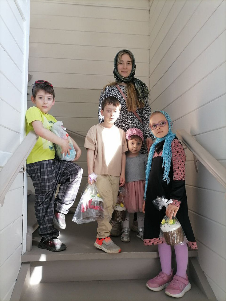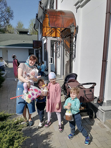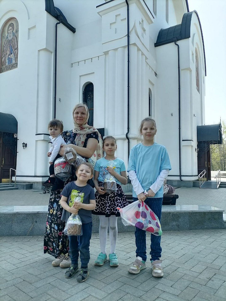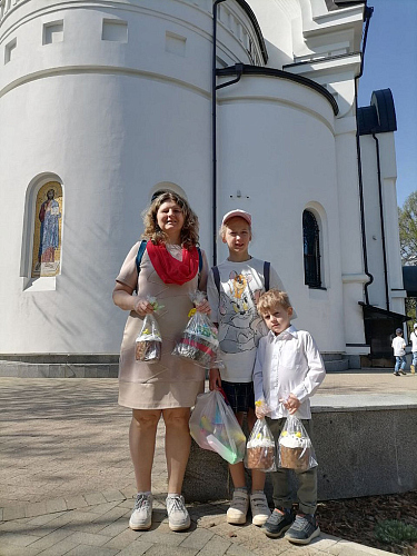 20 апреля 2025 года по окончании поздней Божественной литургии социальная служба храма поздравила окормляемые многодетные семьи прихода с праздником Светлого Христова Воскресения.