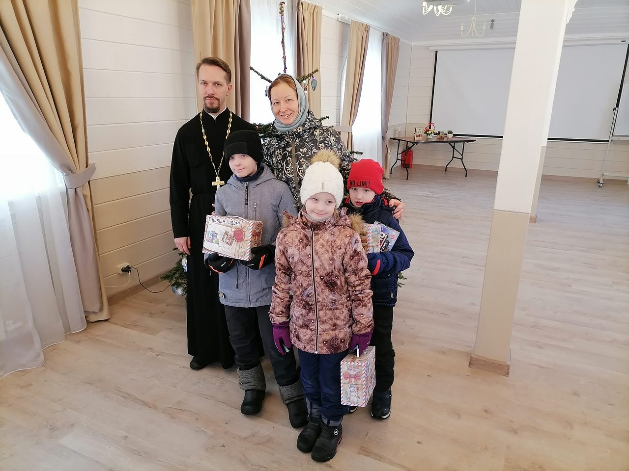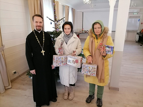Окормляемые семьи прихода получили рождественские подарки, которые состояли из традиционных сладостей и настольных игр. Подарки получили 97 детей из 38 многодетных семей.