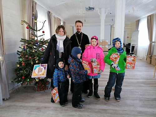 Окормляемые семьи прихода получили рождественские подарки, которые состояли не только из традиционных сладостей, но и подарков родителям, а также настольных игр для всей семьи. Подарки получили 105 детей из 30 многодетных семей.