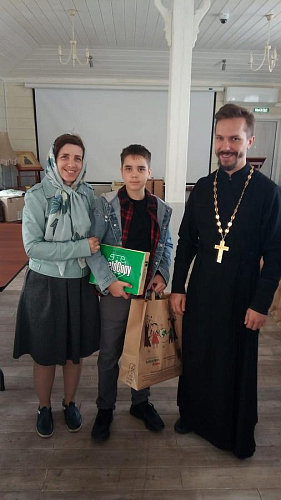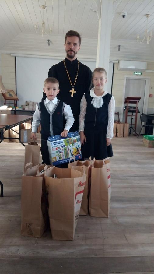 После молебна 67 школьников из 34 окормляемых многодетных семей прихожан получили подарки к школе. Из них десяти первоклассникам подарили особые школьные наборы и стихотворные напутствия. Подарки вручил ответственный за социальную работу иерей Иннокентий Семенов.