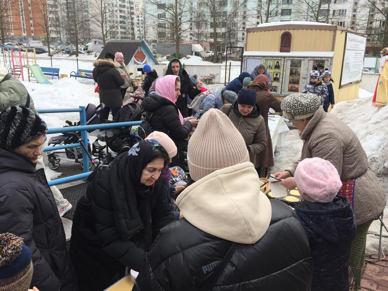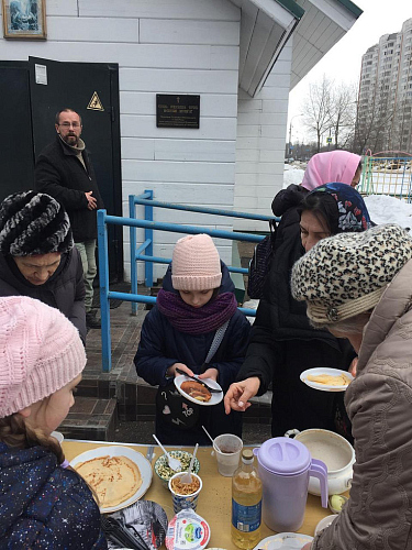 Все желающие могли получить православные книги на разную тематику, а также отведать испеченные волонтерами храма блинчики с разнообразными начинками.
