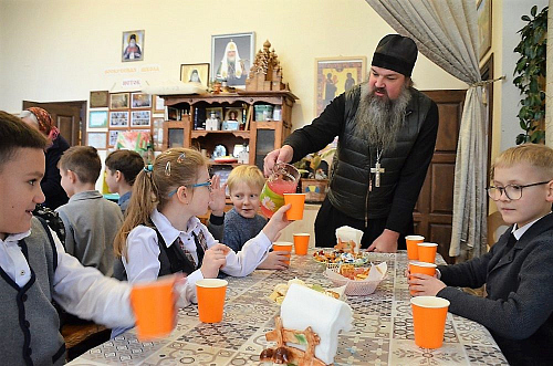 По окончании экскурсии настоятель пригласил всех гостей в Воскресную школу на сладкий стол, где продолжилась беседа. Дети с удовольствием делились своими впечатлениями от экскурсии. Ребята также ответили на все вопросы, которые задал иерей Иоанн в импровизированной викторине о храме и колоколах, в которой не было победителей и по итогам которой все участники получили сладкие призы.