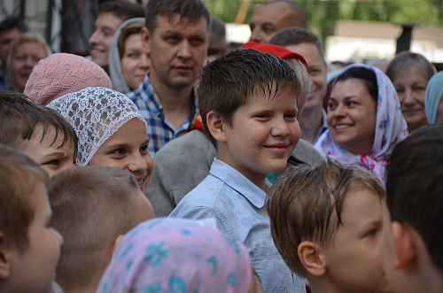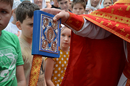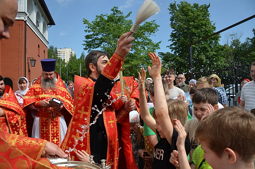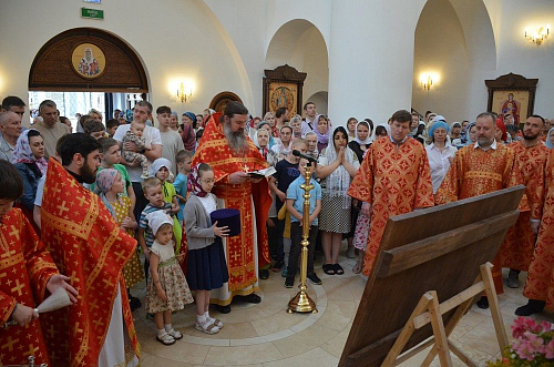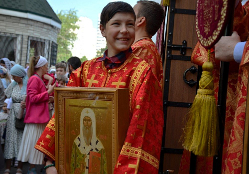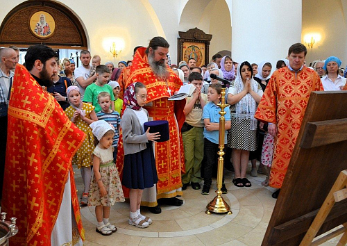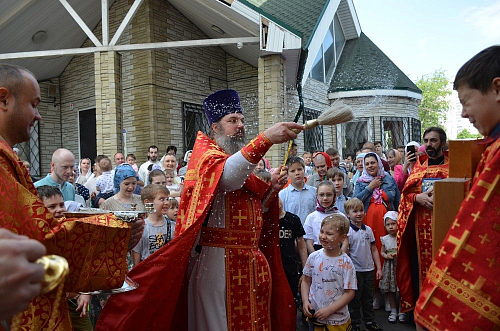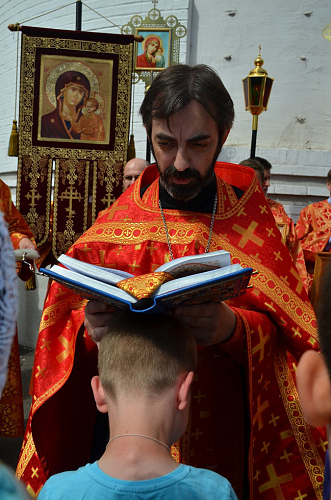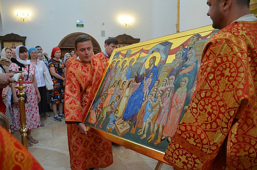 Чин освящения иконы Благословение детей совершил настоятель храма иерей Иоанн Омелянчук в сослужении духовенства храма, после которого настоятель обратился с проповедью к собравшимся, где отметил, что примерно 100 имен детей будут вписаны на вечное поминовение на обратной стороне иконы.