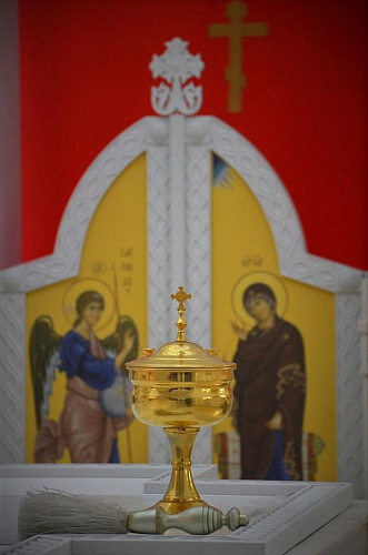 В завершение иерей Иоанн окропил всех собравшихся святой водой и помазал елеем.
