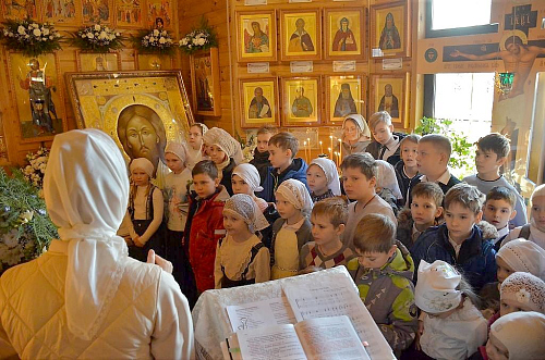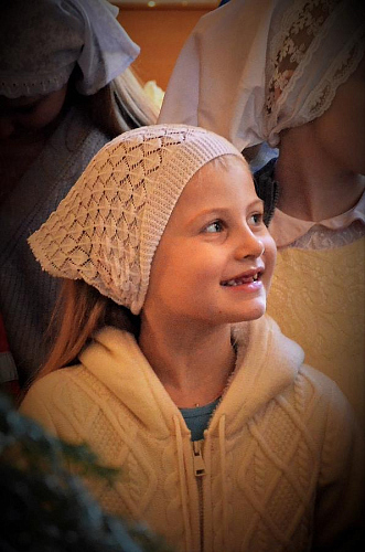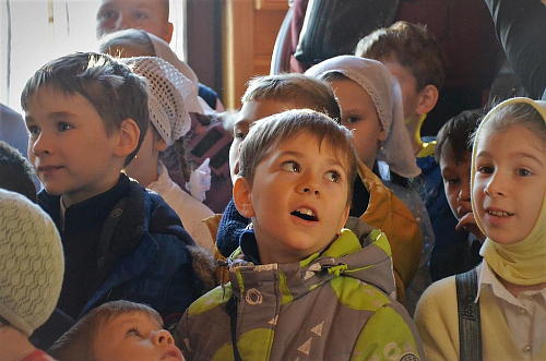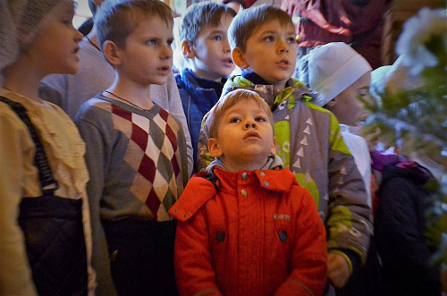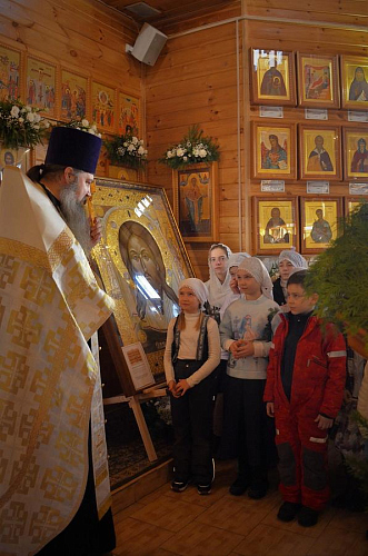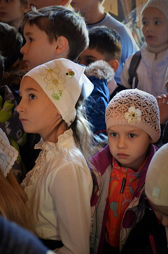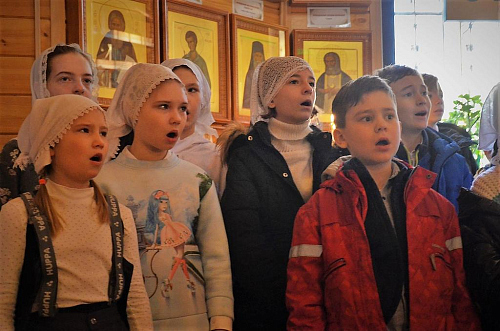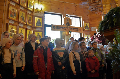 В хоре пели воспитанники Воскресной школы "Исток". Учащиеся пели основные распевы, молитвы и Тропарь Рождества Христова под руководством регента Виктории Куликовой. В завершение дети исполнили колядку «Рождество Христово», чем порадовали всех, кто присутствовал в храме.