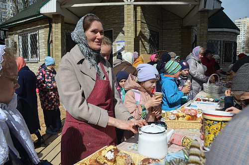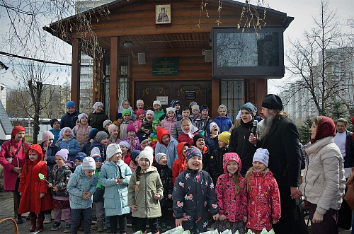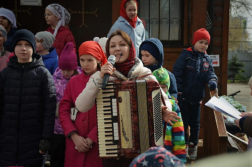 Ребята в своих выступлениях "оживляли" волшебную лестницу, с каждой песней-ступенькой пройденного поста приближались к Светлой Пасхе. Зрителями концерта стали не только родители и родственники учащихся, но и все присутствующие. Все с удовольствием приобщились к Светлому Празднику благодаря прекрасному выступлению детей. Также на территории храма была организована детская ярмарка весенних кексов, испеченных и украшенных учащимися Воскресной школы на кулинарном мастер-классе.