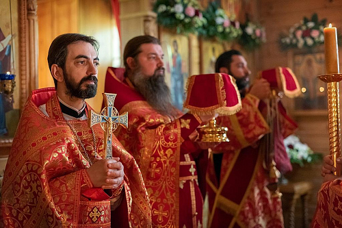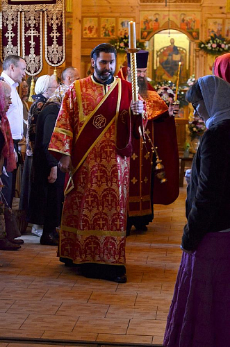 Праздничные Богослужения возглавил настоятель храма иерей Иоанн Омелянчук в сослужении иерея Самуила Мнацаканова и диакона Иоанна Клинцова, клирика храма Христа Спасителя.