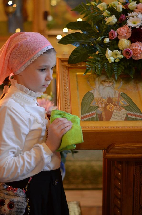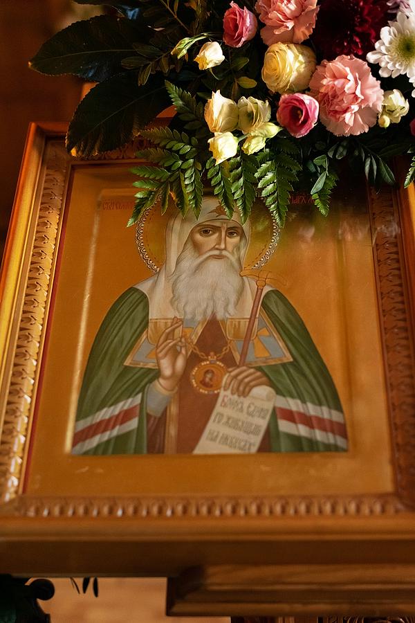после чего иерей Иоанн Омелянчук поздравил присутствующих с праздником, пожелав всем в своих молитвах обращаясь к святителю Ермогену, просить его о главном - укреплении в вере, которая является основной всей духовной жизни. В своей проповеди иерей Иоанн Омелянчук отметил, что Патриарх Ермоген был защитником православной веры. Даже находясь в заключении, мучимый и моримый голодом, не убоявшись врага, призывал русский народ стоять до победного конца, защищать страну от неприятеля, спасать веру православную.