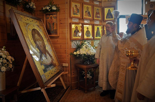 Чин освящения иконы после Божественной Литургии совершил настоятель храма иерей Иоанн Омелянчук в сослужении иерея Самуила Мнацаканова и игумена Серафима (Белла).