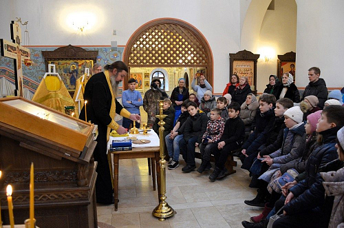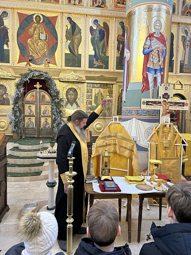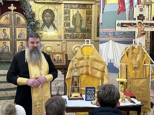 2 февраля 2025 года, по окончании Божественной Литургии, в храме Священномученика Ермогена, Патриарха Московского и всея Руси, чудотворца, в Зюзине настоятель храма иерей Иоанн Омелянчук провёл занятие для учащихся Воскресной школы.