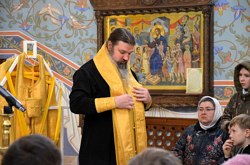 Затем настоятель представил священническое и диаконское облачение и рассказал о каждом предмете: как называется и что символизирует.