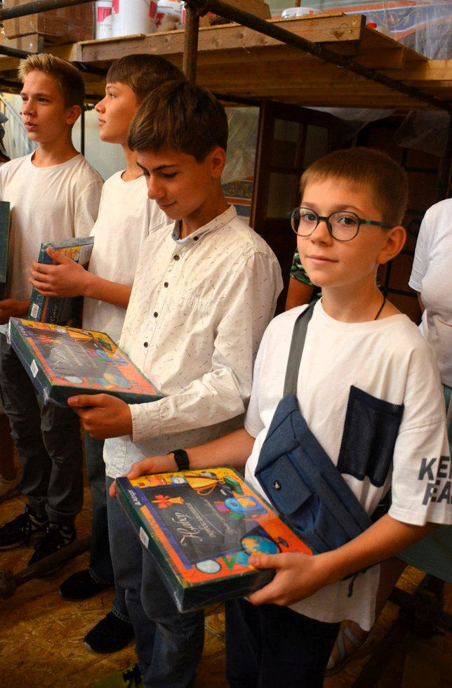 Традиционно первыми поздравления в этот день приняли первоклассники - директор Воскресной школы Екатерина Вадимовна с помощью выпускников Воскресной школы "Исток" вручили им памятные подарки для подготовки к школе и сладкое угощение.