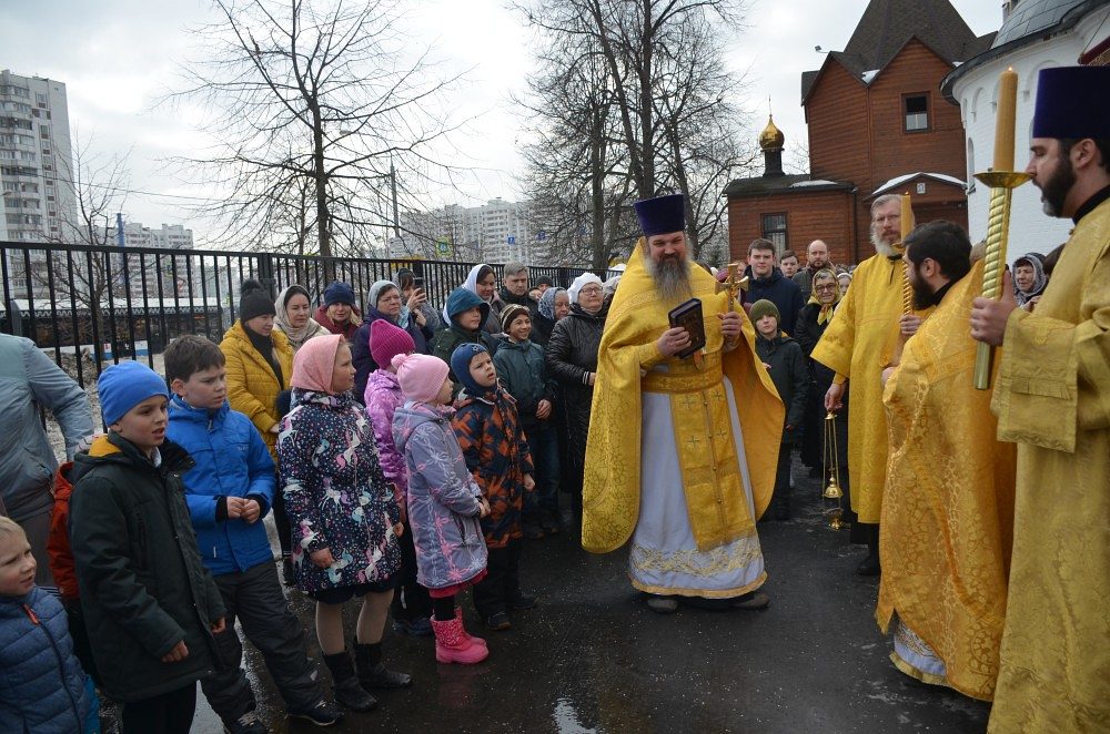 По окончании богослужений на территории храма для всех присутствующих состоялась праздничная трапеза - блины со сметаной, вареньем и сгущенкой, без которых не обходится ни одна масленица, и традиционный вкусный чай со сладостями. Также был организован мастер-класс по выпеканию блинов, в котором активно участвовали воспитанники Воскресной школы храма. Для детей младшей группы Воскресной школы проведены масленичные гулянья - под аккомпанемент аккордеона дети водили хороводы, принимали участие в настольных и подвижных играх.