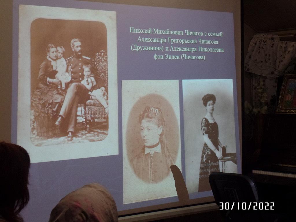 Также на мероприятии были подняты Военно-Патриотические темы. С докладом о славных воинах из рода Чичаговых выступил Левушкин Владимир Анатольевич. Он рассказал о всех подвигах, военном искусстве побеждать врага на море и на суше. Так 26 июля 1789 года 25 кораблей русского флота под командованием адмирала Василия Чичагова сошлись в бою у острова Эланд с 36-ю кораблями шведского флота, которыми руководил герцог Карл Седерманландский. Многочасовое сражение завершилось отступлением шведов, которые не смогли одолеть оборонительные построения Чичагова.