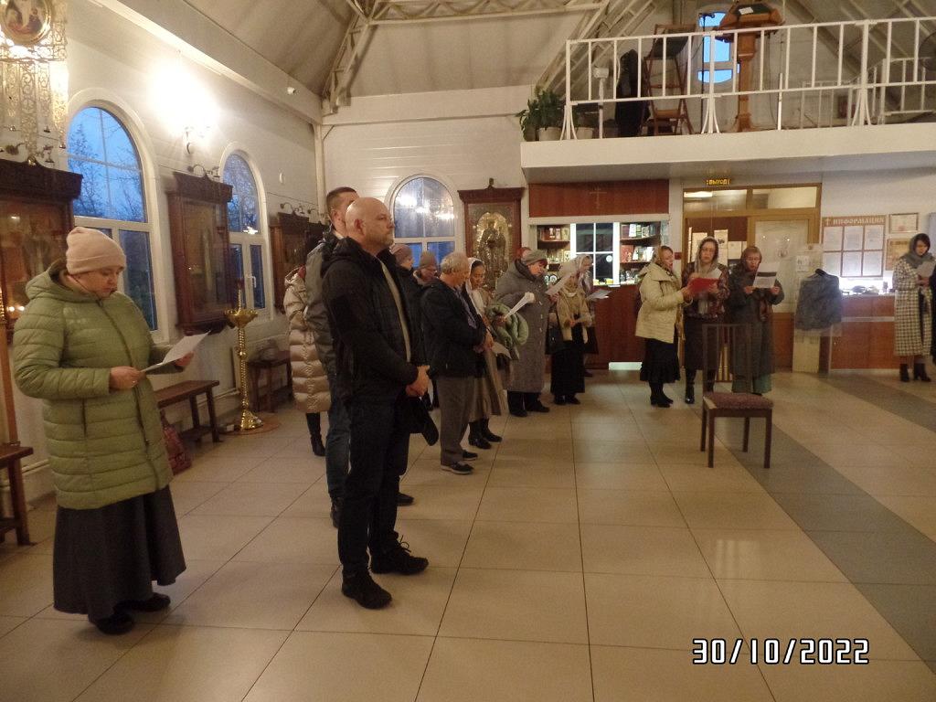 Творческий вечер начался с молитвы священномученику и заупокойной литии по его усопшим сродникам. Затем в Воскресной школе храма продолжилось основное мероприятие.