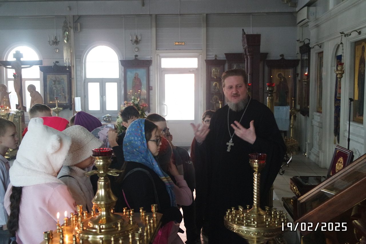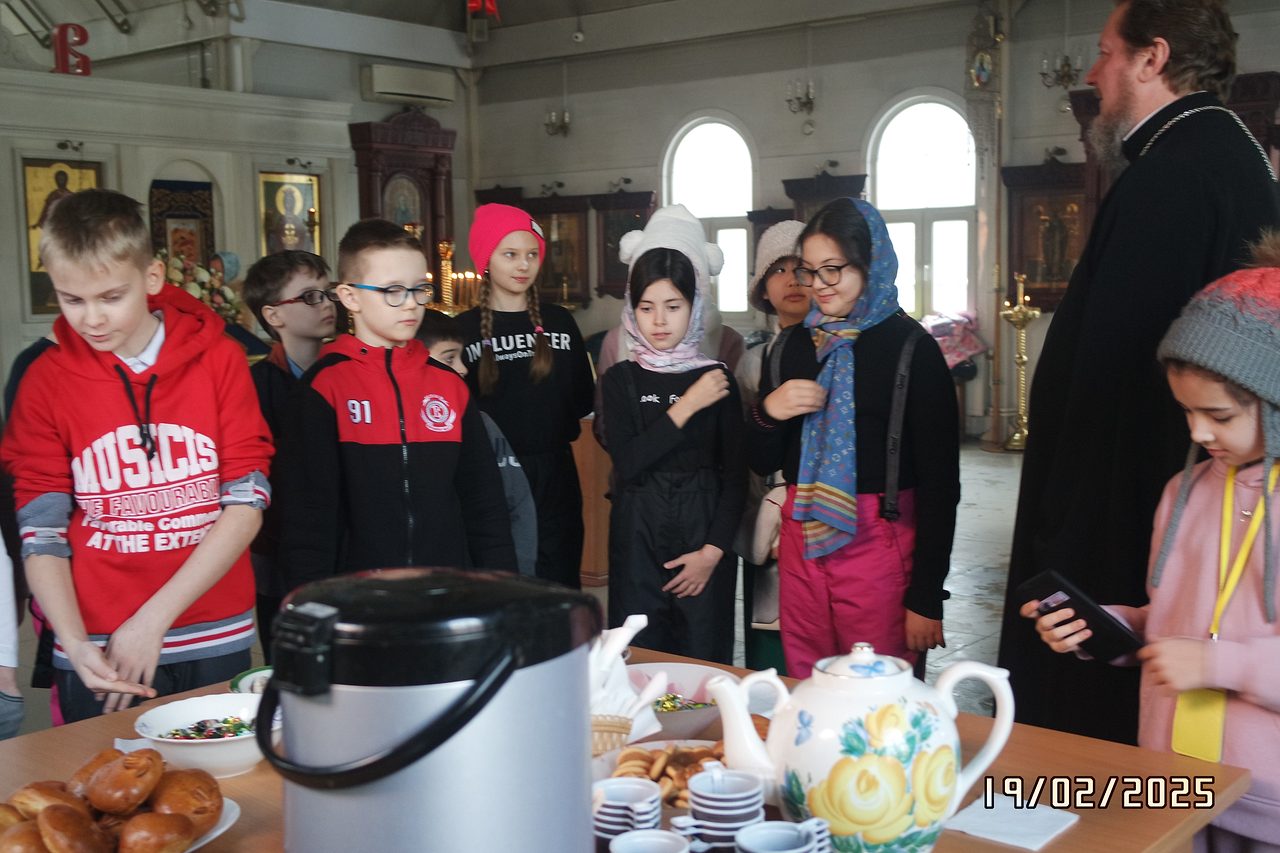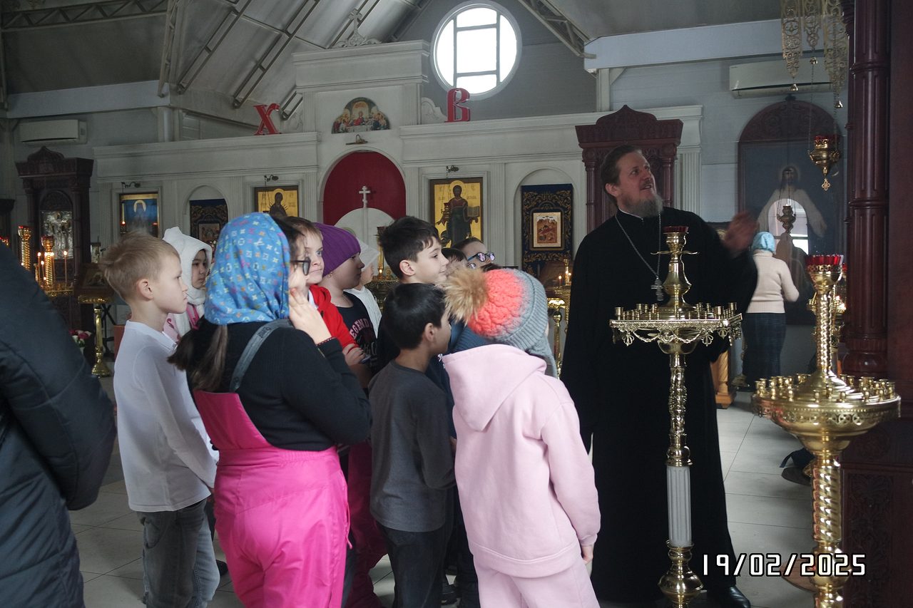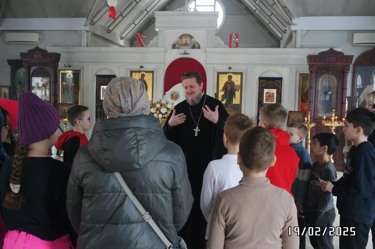 19 февраля 2025 года, по благословению настоятеля храма Священномученика Серафима, митрополита Петроградского г. Москвы, иерея Максима Глухих, клирик храма иерей Сергий Онг провел экскурсию для учащихся 4-х классов общеобразовательной школы № 1355, которые в этом учебном году на уроках ОРКСЭ знакомятся с основами Православной культуры.