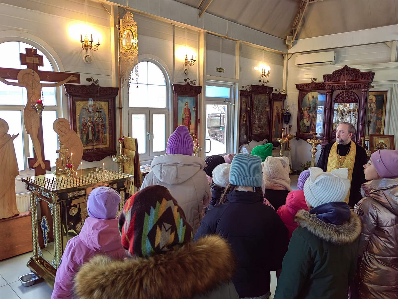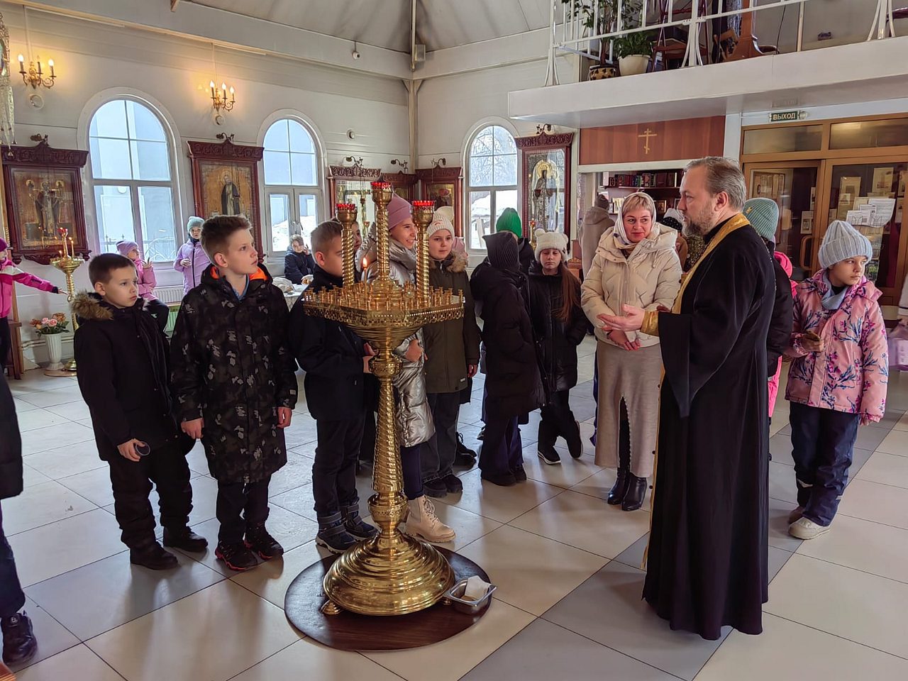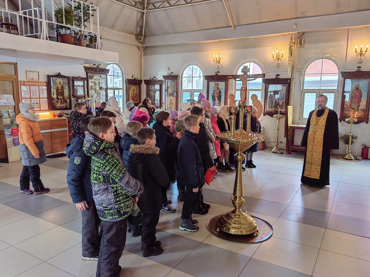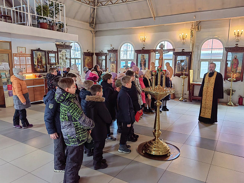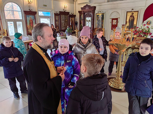 12 марта 2024 года, в храме Священномученика Серафима, митрополита Петроградского г. Москвы, настоятель храма иерей Максим Глухих и общественный методист храма Малюкова Анна провели экскурсию для учащихся 4-х классов общеобразовательной школы № 1355.