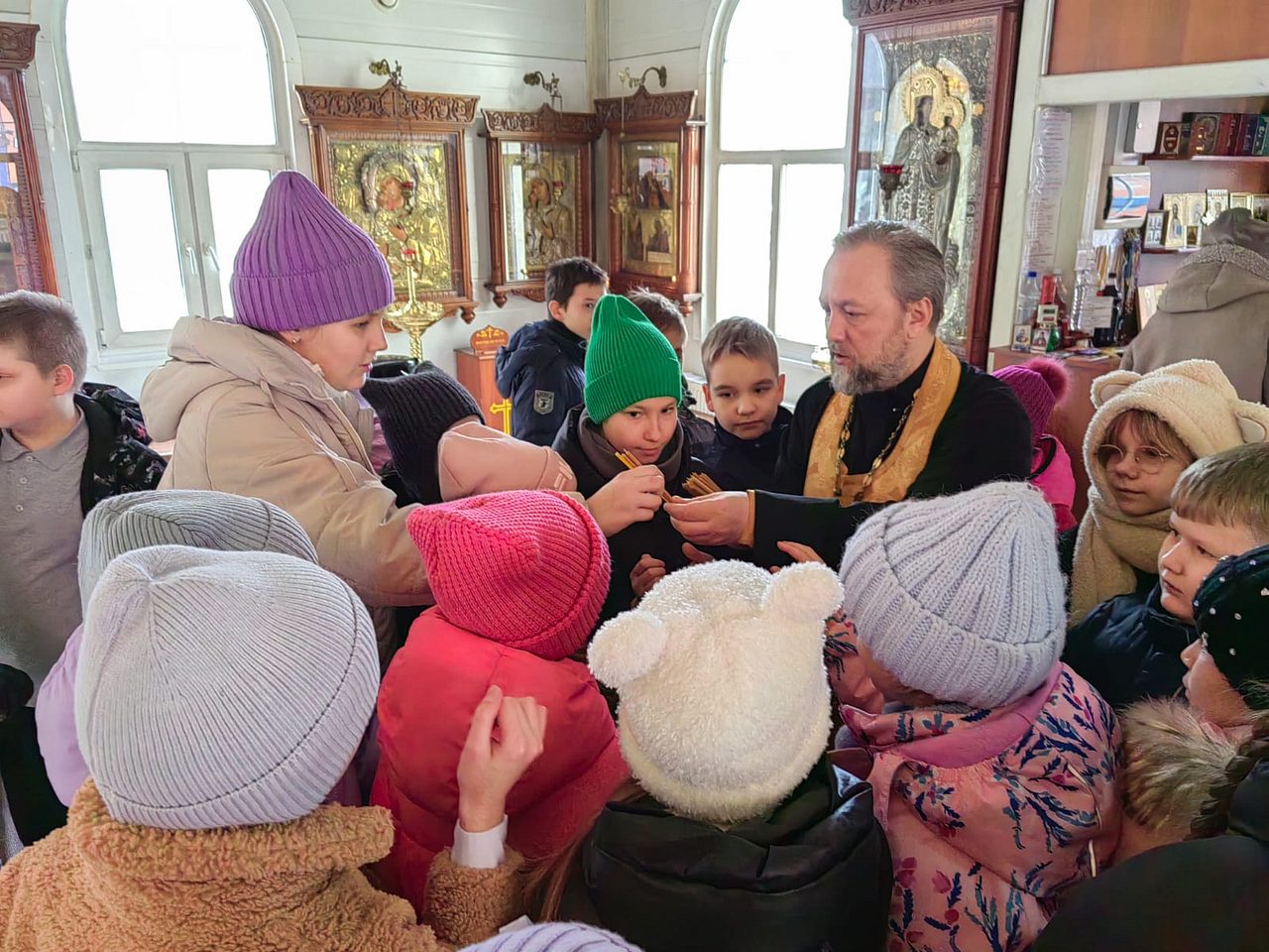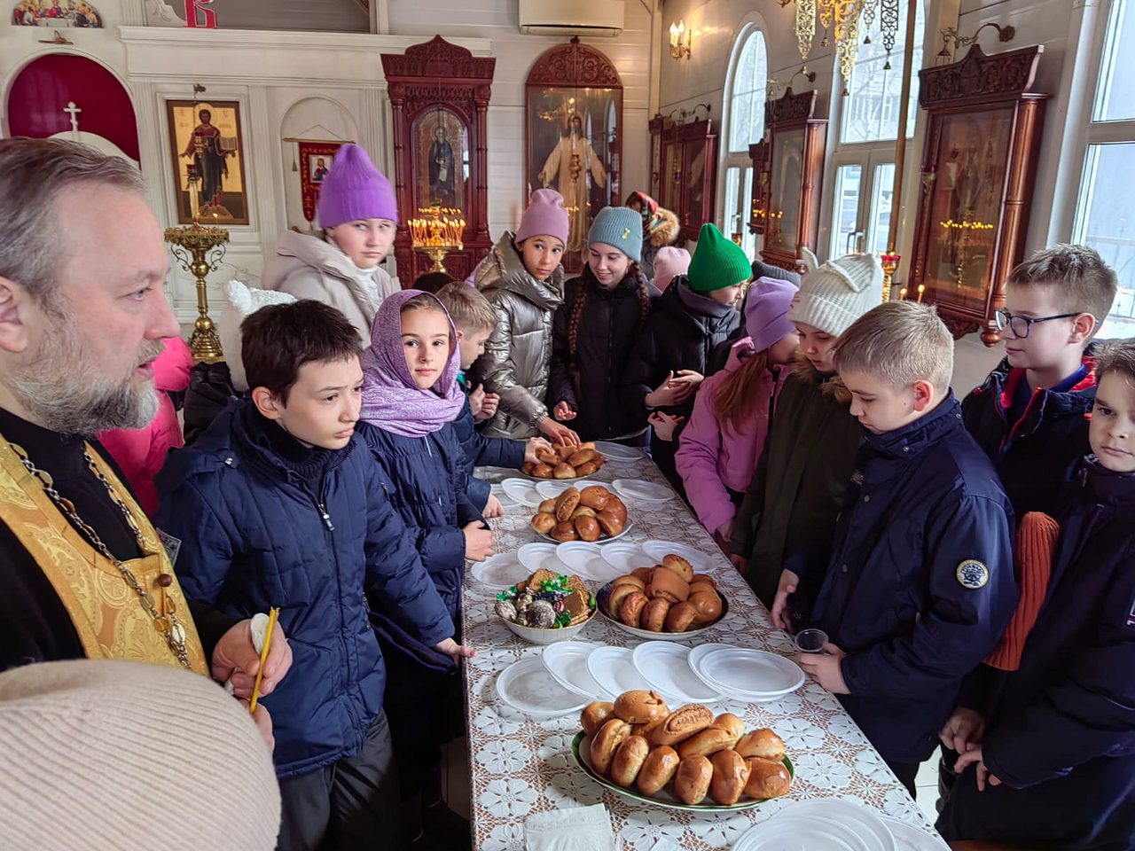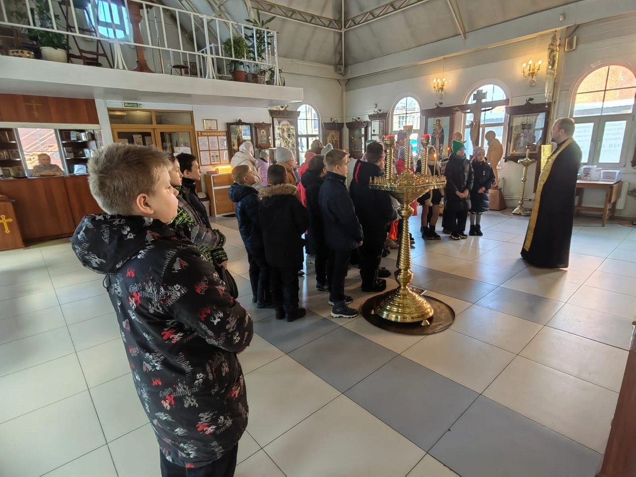 12 марта 2024 года, в храме Священномученика Серафима, митрополита Петроградского г. Москвы, настоятель храма иерей Максим Глухих и общественный методист храма Малюкова Анна провели экскурсию для учащихся 4-х классов общеобразовательной школы № 1355.