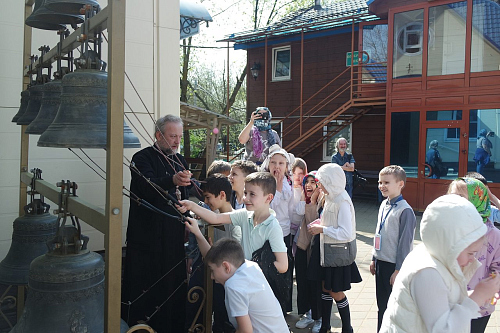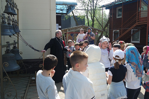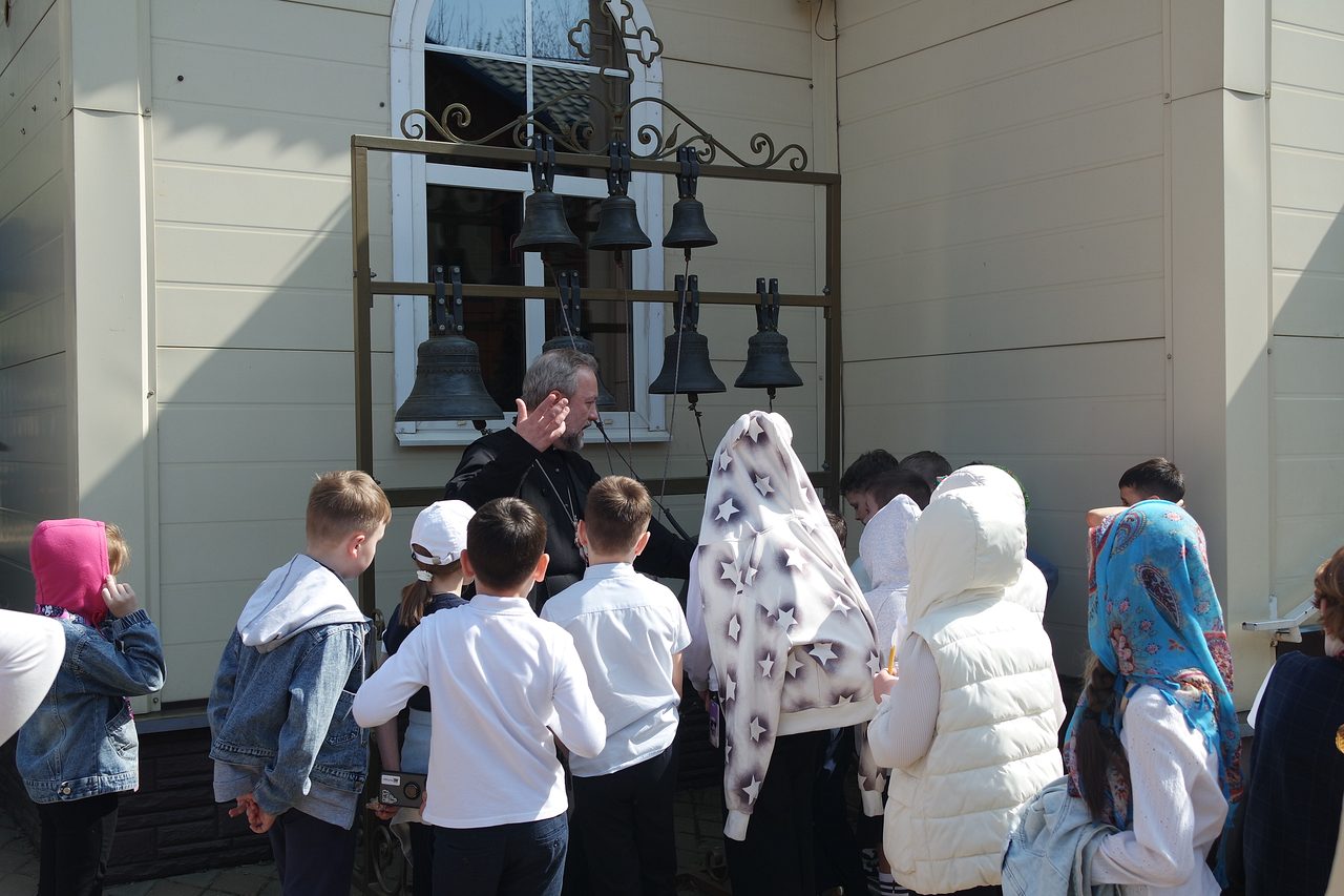Ребятам смогли попробовать себя в роли звонарей. По старинной православной традиции в дни Пасхальной недели позвонить в церковные колокола может каждый желающий.
