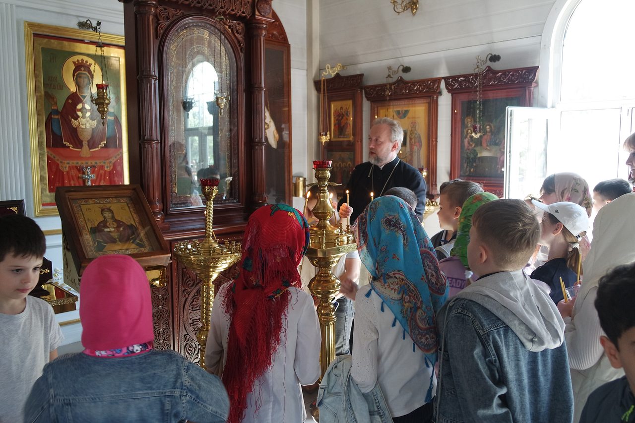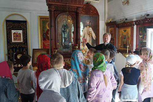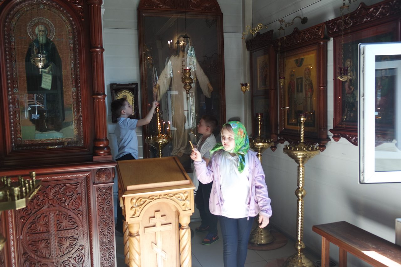 Школьники познакомились с внутренним и внешним устройством временного храма иконы Божией Матери «Неупиваемая Чаша» и увидели строящийся храм Священномученика Серафима.