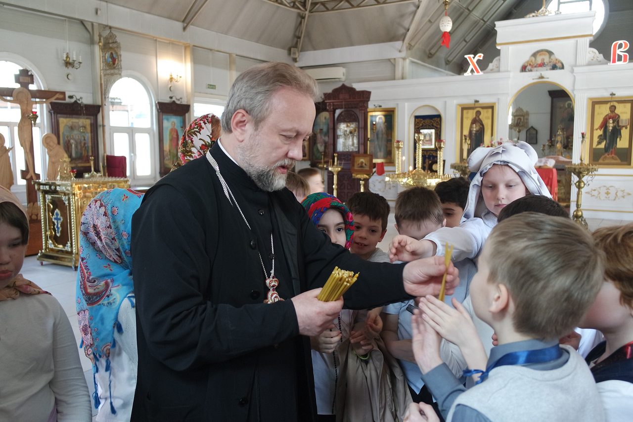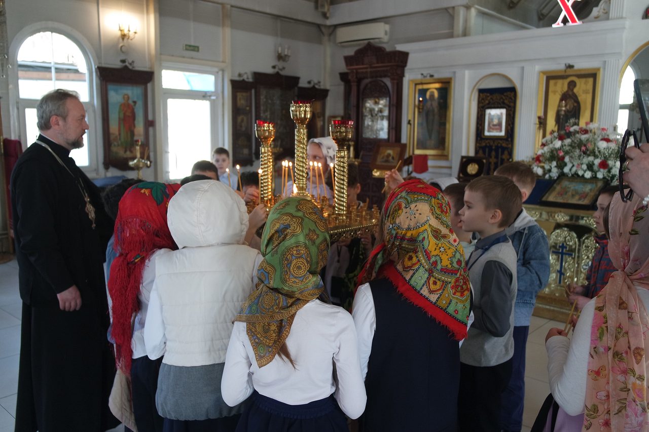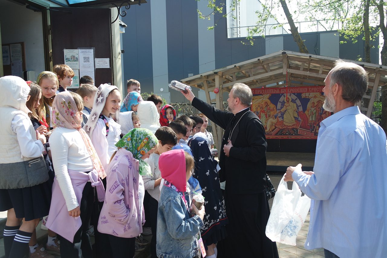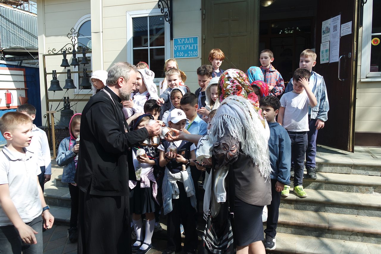 23 апреля 2025 года, в Среду Светлой седмицы, в храме священномученика Серафима, митрополита Петроградского в Южном Бутове г. Москвы, настоятель храма Священномученика Серафима, митрополита Петроградского г. Москвы иерей Максим Глухих провел экскурсию для учащихся 3-го класса общеобразовательной школы № 1355,