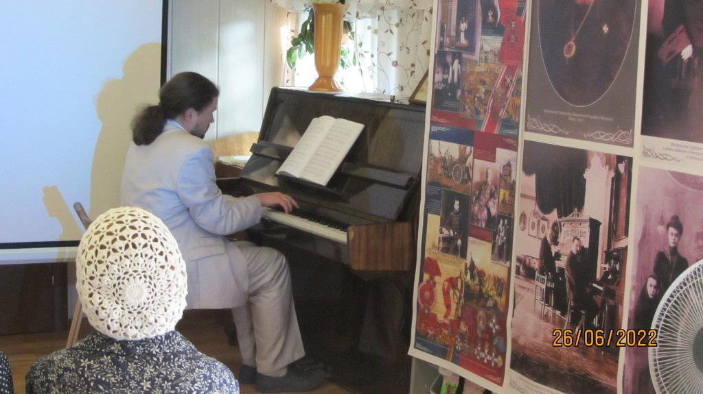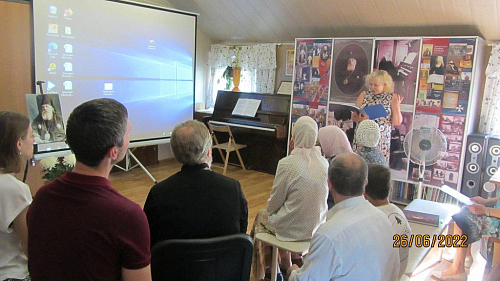 В исполнении Ларисы Черновой,в сопровождении Александра Соколова, прозвучали фрагменты духовных и светских музыкальных сочинений святителя Серафима:«О Мати Божия», «Архидиакон Стефан», «Хочу молиться».Пианист Александра Соколова исполнил элегию «Мой путь еще не кончен».