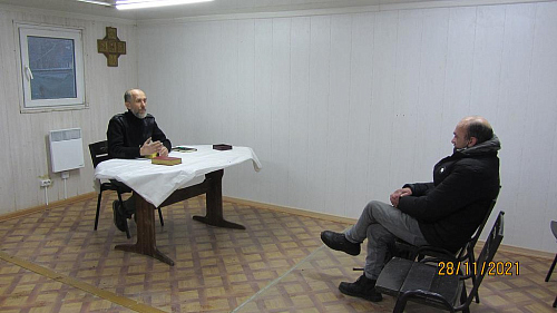 28 ноября 2021 года в храме священномученика Серафима, митрополита Петроградского в Южном Бутове была проведена беседа с бездомным о Православной вере.