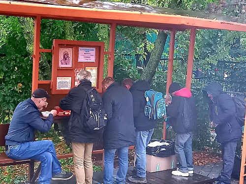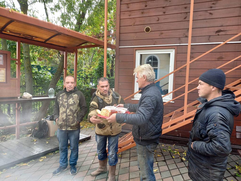 Волонтеры храма готовят и ежедневно раздают горячие обеды для бездомных. Продукты жертвуют прихожане. В день удается накормить 10-15 человек.