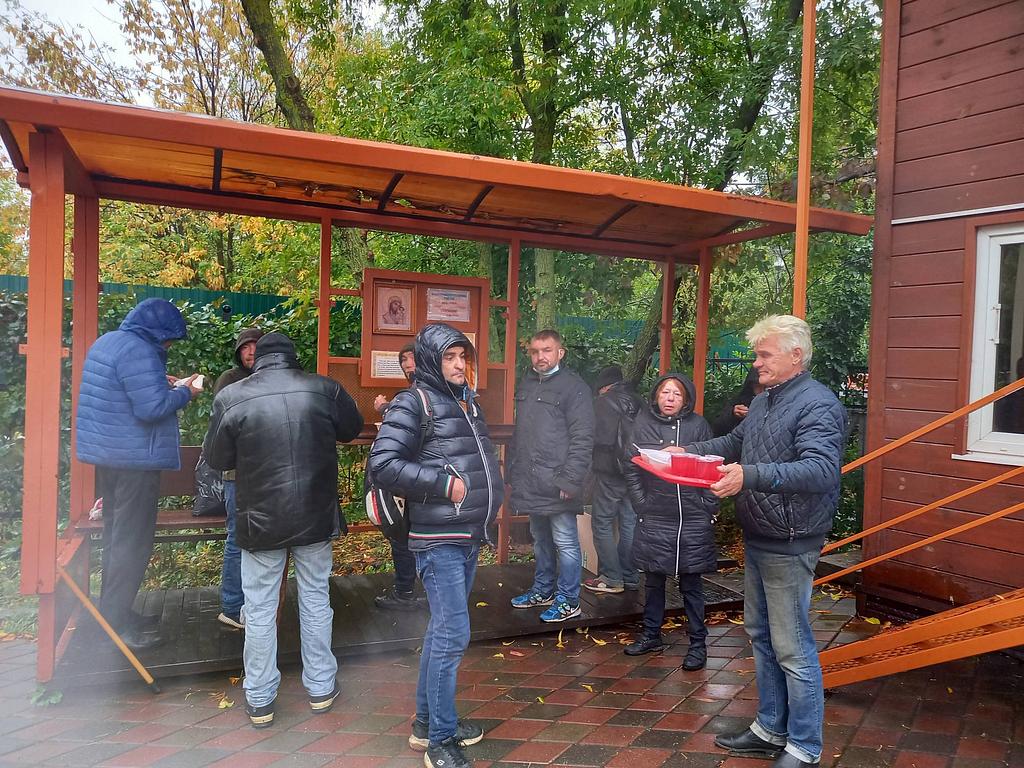Еда раздается за территорией храма в одноразовой посуде с соблюдением всех санитарных норм и дезинфекции. При этом с бездомными волонтеры проводят беседы о Православной вере, пред трапезой совершают молитвы, соблюдая санитарные нормы и социальную дистанцию.